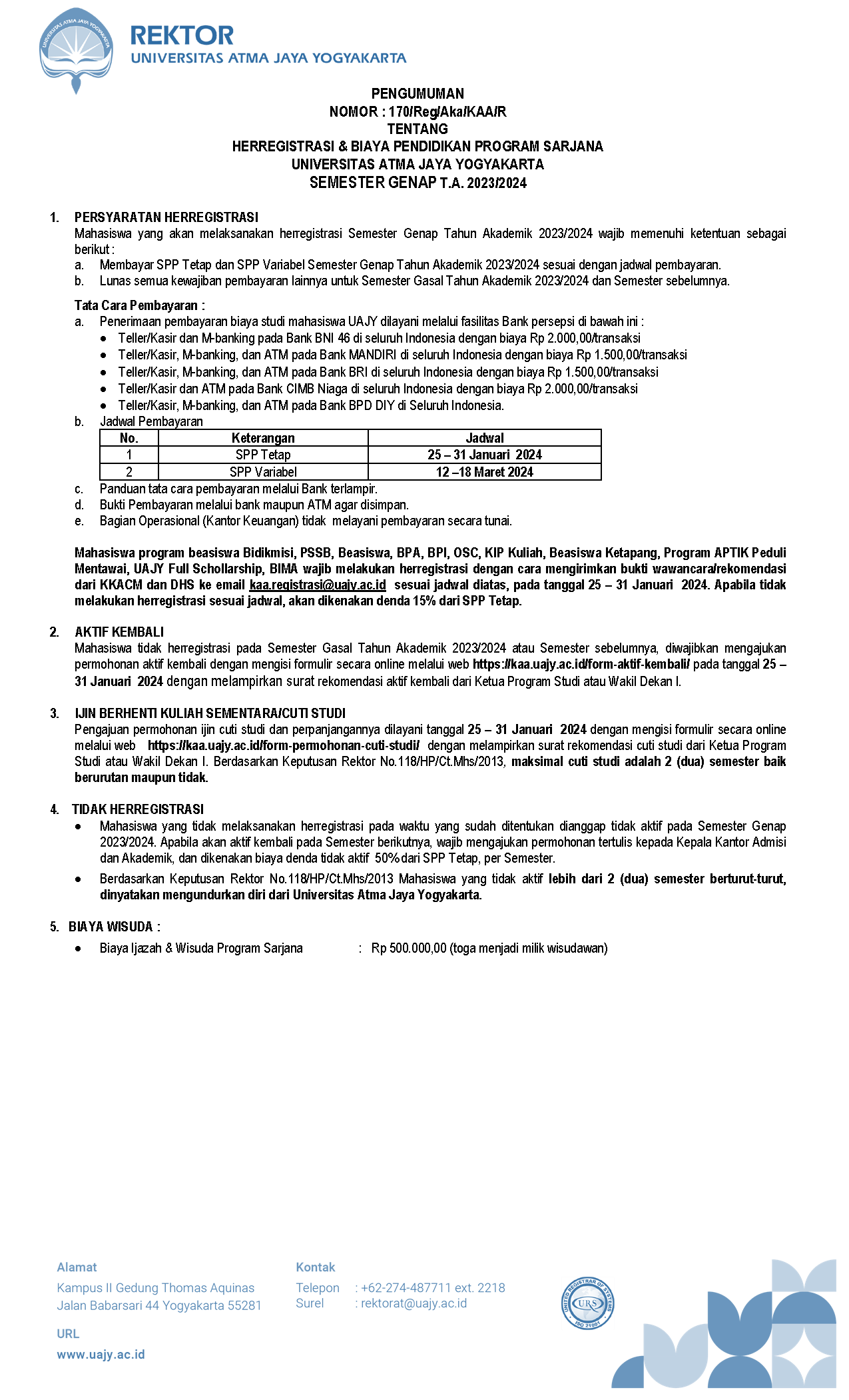 PENGUMUMAN - Herregistrasi Program Sarjana Semester Genap 2023/2024